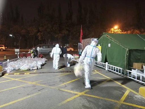 由于小區(qū)出現(xiàn)了多起陽(yáng)性病例,進(jìn)封控樓為住戶挨家挨戶配送生活物資,成了志愿者們心有余悸的一件事。作為晚班時(shí)段第四小分隊(duì)的骨干力量,高帆每次上崗都搶先穿戴好防護(hù)服,主動(dòng)承擔(dān)起本隊(duì)入樓配送工作?!半m然也曾有過(guò)一絲顧慮,但醫(yī)護(hù)人員、消殺工作人員能進(jìn)那我也能?!痹陲L(fēng)險(xiǎn)挑戰(zhàn)面前,他選擇了迎難而上,主動(dòng)沖在隊(duì)友們前面,承擔(dān)起了最具挑戰(zhàn)性的工作。