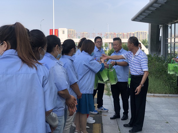 市城市燃熱集團公司副總經(jīng)理張永代表集團公司工會為城發(fā)房地產(chǎn)公司、城發(fā)客運公司、城發(fā)管網(wǎng)公司、富泰熱力公司及燃氣熱力公司的職工送去了集團公司的關懷,送上了慰問品。他對一線員工在高溫下堅守崗位表示感謝,叮囑大家,在堅守崗位時,要注意安全,做好防暑降溫措施,勞逸結合,保證身體健康。并要求大家要強化底線思維、憂患意識,做好疫情防控。